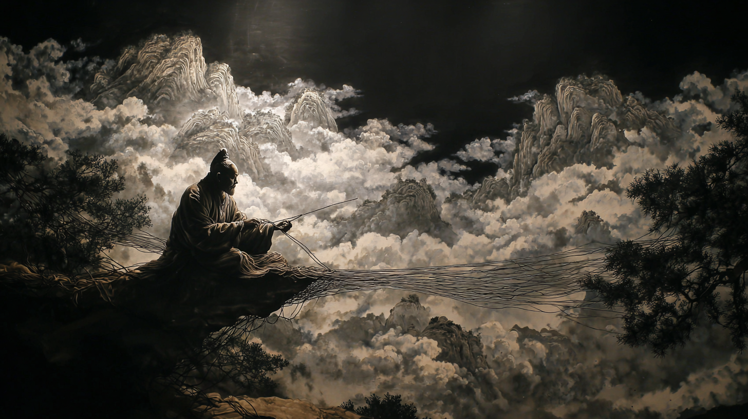 他以水墨之色,染其瓣,是为江山之“辽阔”与“沉静”;以金蕊为缀,是为历史长河中,那些“不灭”的“英雄”与“诗篇”。他所缠绕的,早已不是“丝线”,而是“时光”本身。