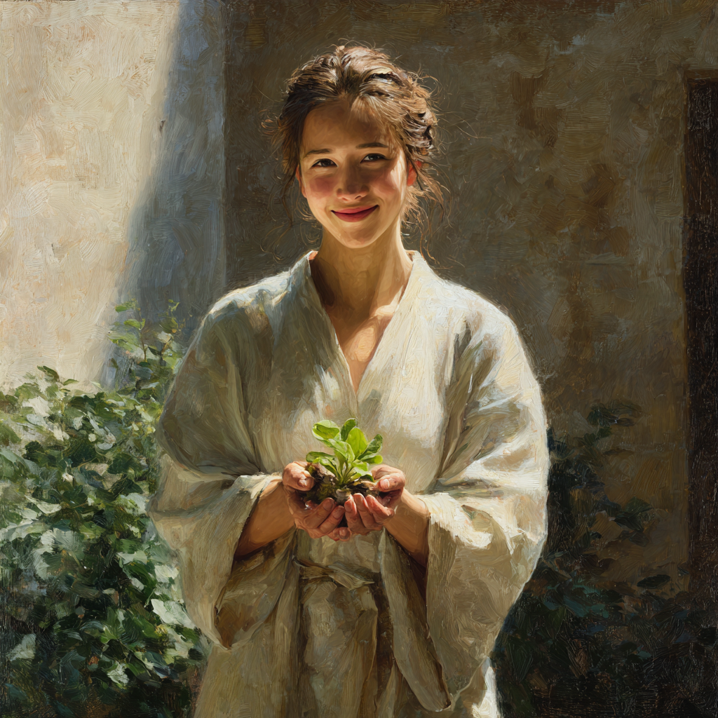“闺房晨光”,则是此“美”得以被“滋养”的“神圣空间”。它,是“世界”的“喧嚣”被“隔绝”在外的“结界”。于此“结界”之中,“她”无需“扮演”,只需“成为”。“晨光”是“温柔”的、“不具评判”的,它“平等”地,照亮她“梳妆”的“仪式”,见证她与“自我”的“亲密对话”。