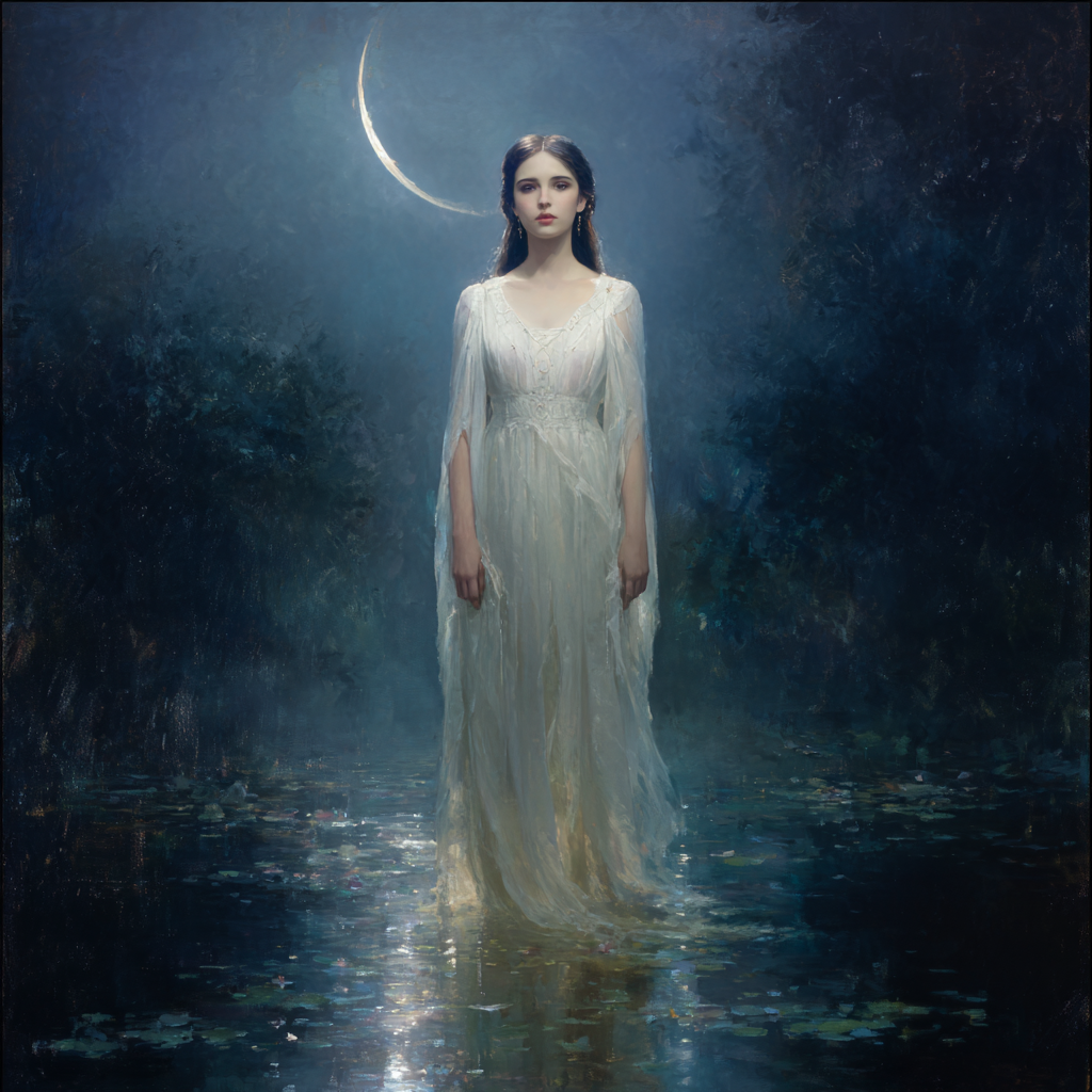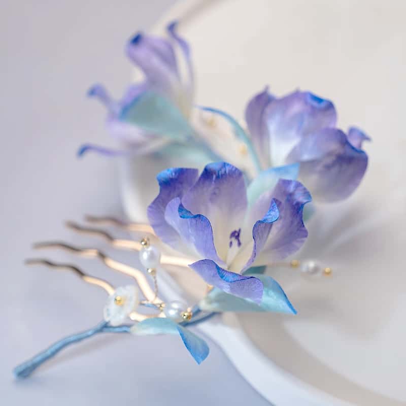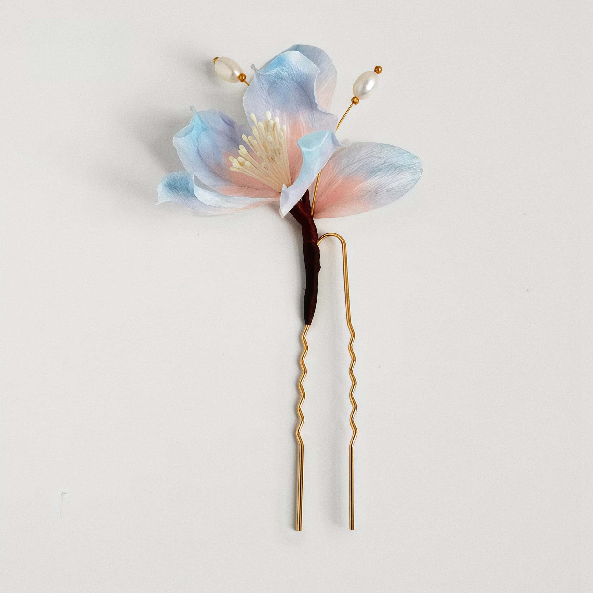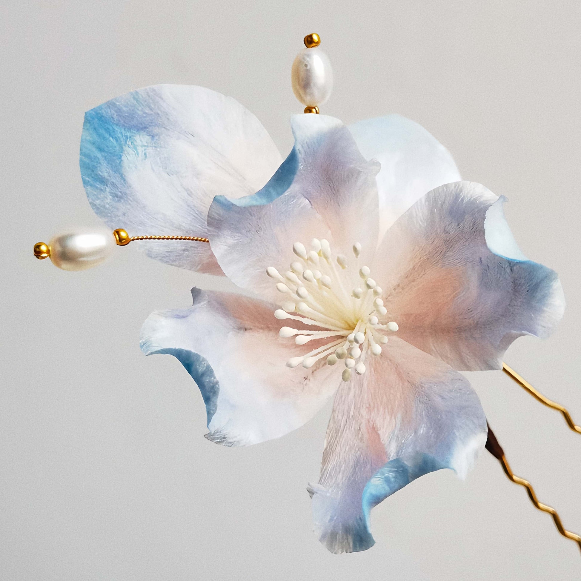 此枚《既视感》发簪,以“水中之月”的“空灵”,”前世记忆”的“虚幻”,为佩戴者,链接那“早已被遗忘”的“更完整的自我”。其花,色如“月光浸染的薄冰”,带着“非人间”的“圣洁”与“易逝感”。此器,是一枚“钥匙”,为“似曾相识”的瞬间,提供“神圣”的“注脚”。