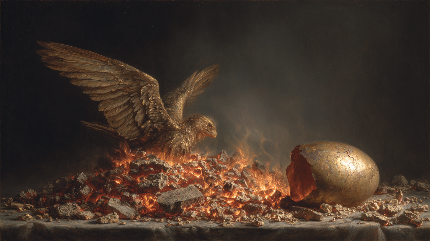 “凤凰涅槃”,是“向死而生”的“最高阶显化”。它并非“被动”地“凋零”,而是“主动”地“投入”火焰,将“旧我”连同其所有“成就”与“伤痕”,尽数“焚烧”。此,非“自毁”,乃是对“生命循环”的“全然信任”,是“最勇敢”的“放下”。