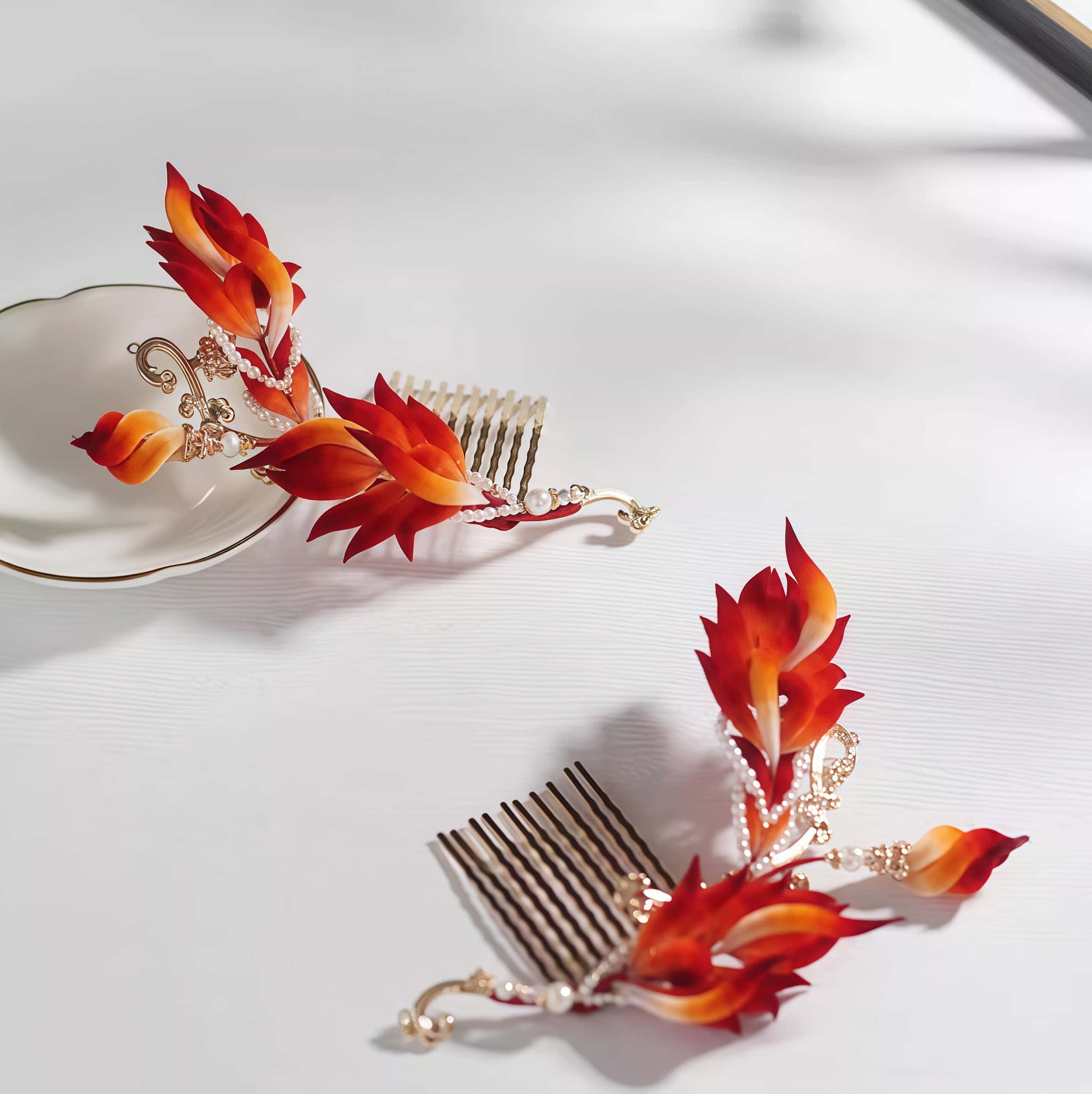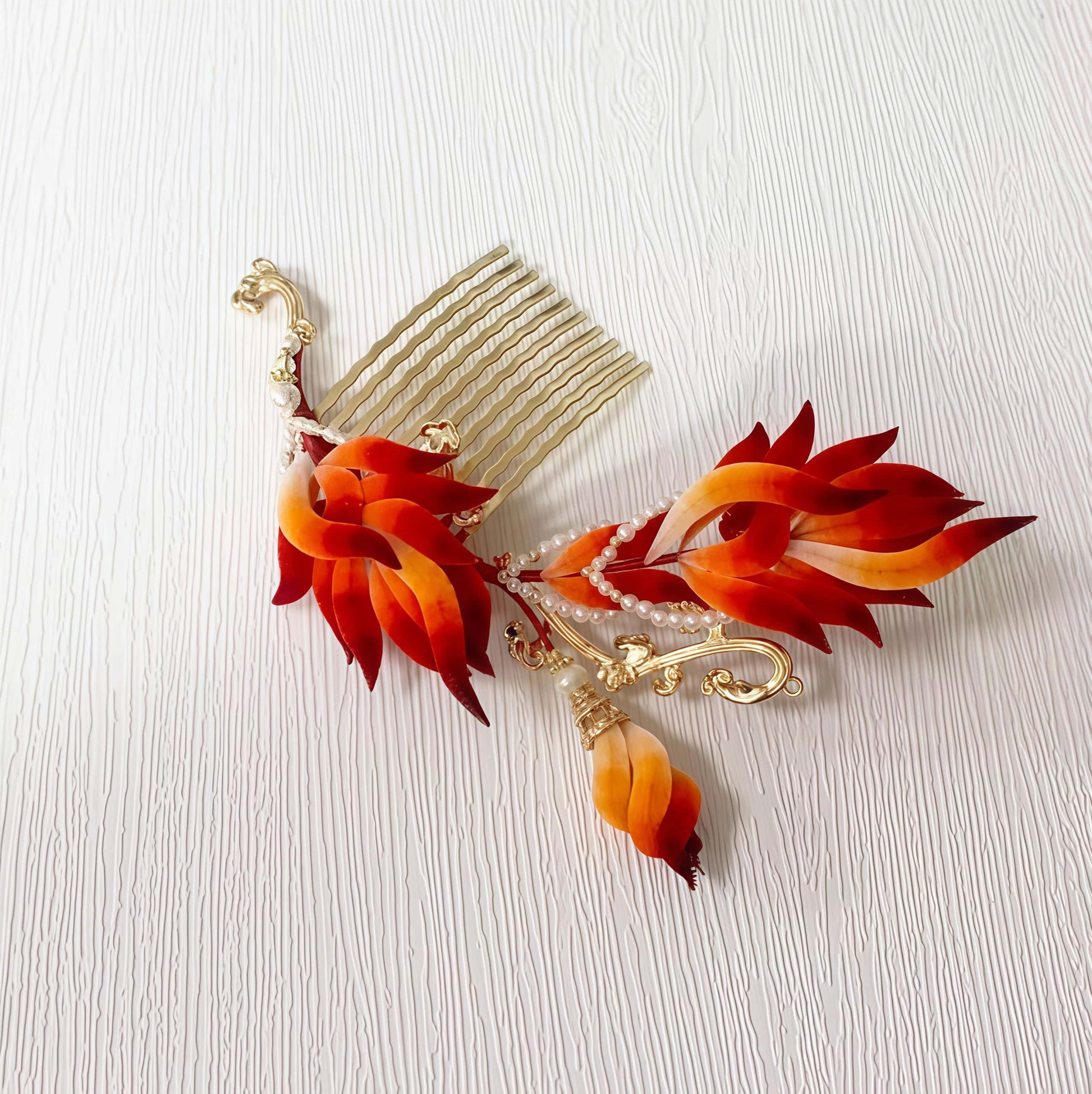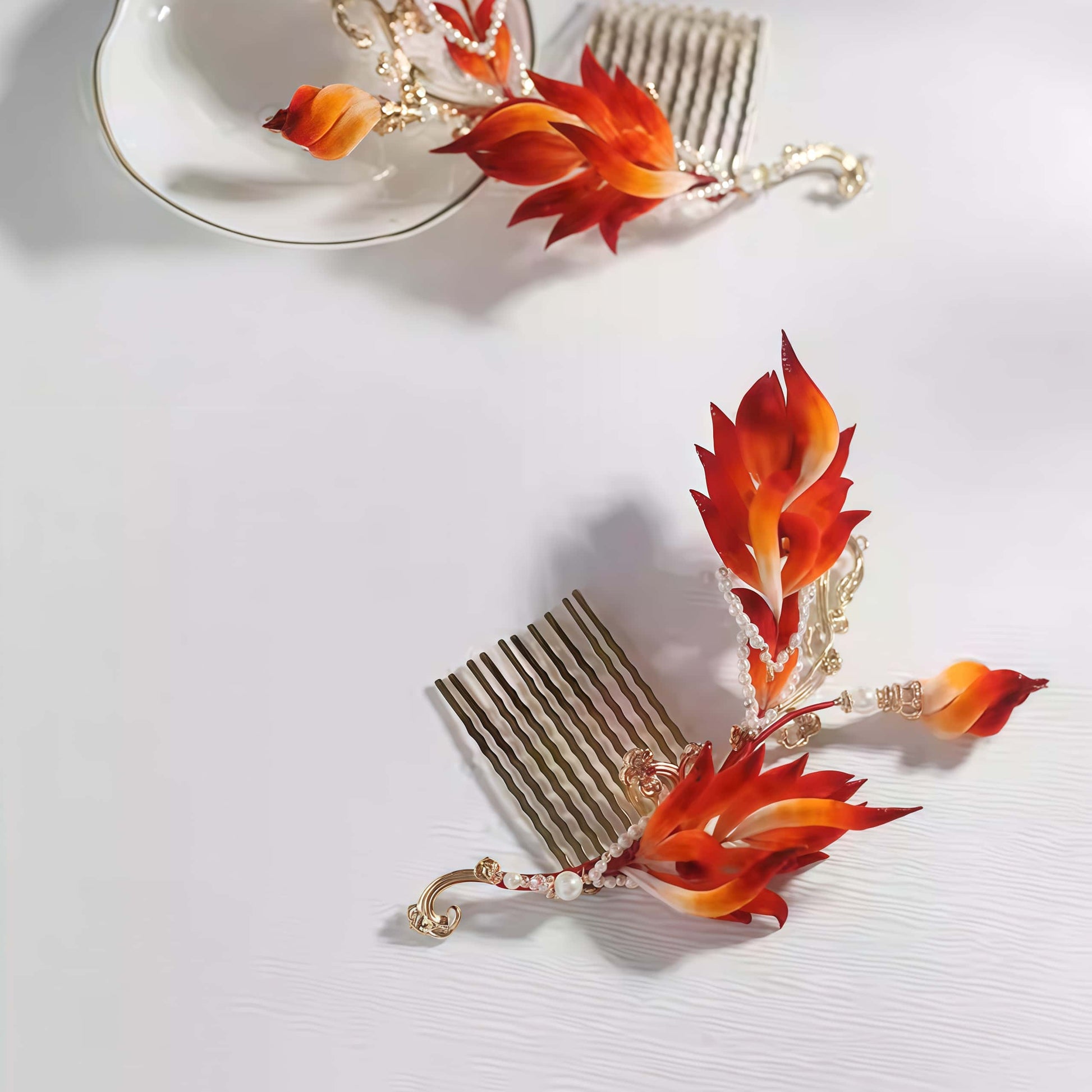 此对《涅槃》发梳,以“南明离火”之形,“凤凰之羽”之势,为佩戴者,注入“生生不息”的“生命力”。其羽瓣,由熔岩之赤,向白炽之光渐变,充满了燃烧的动能。此器,是为每一个渴望“战胜绝境”的灵魂所作的“凯歌”,是“不灭之火”与“重生之意志”的图腾。