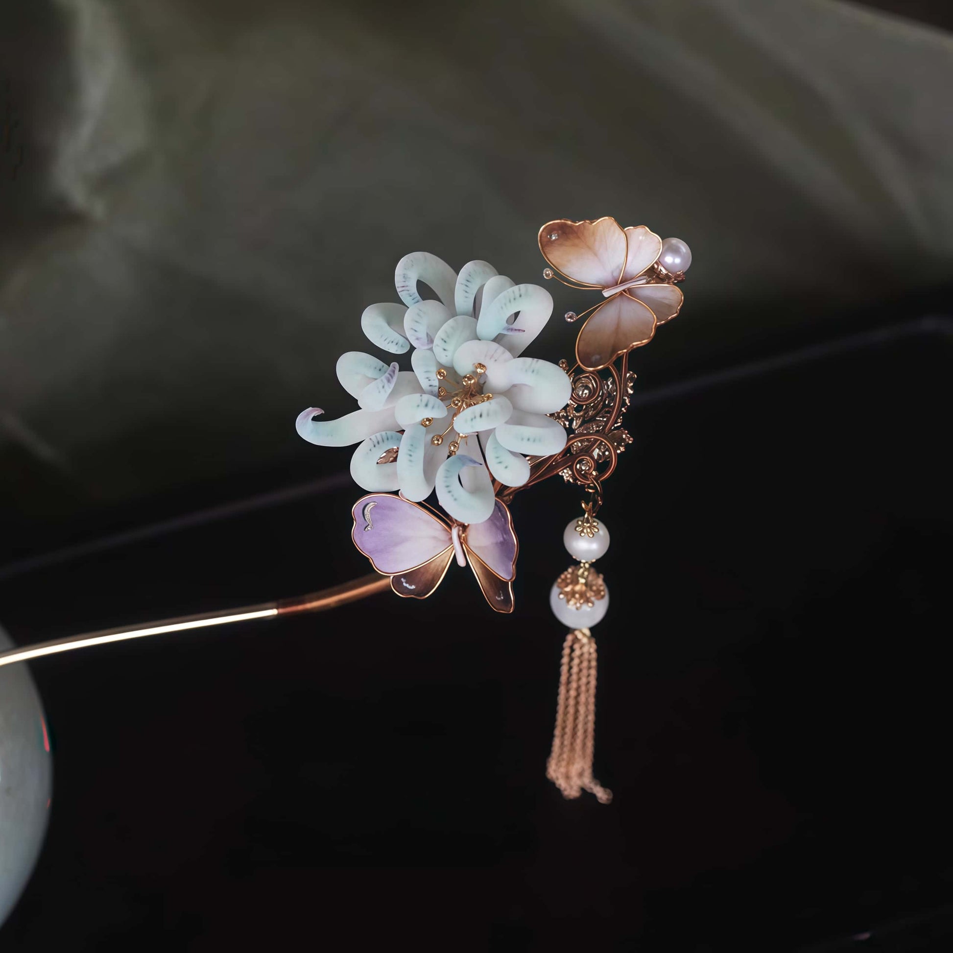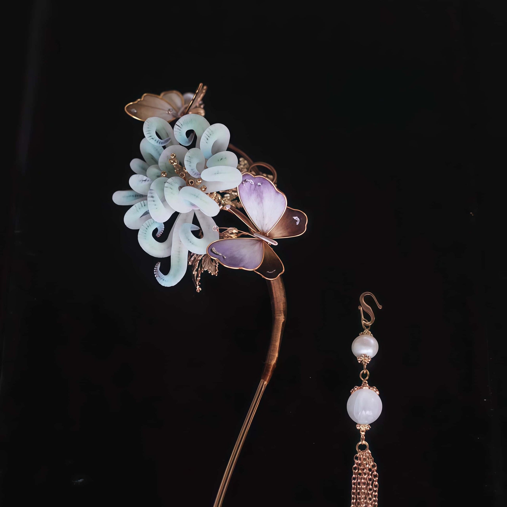 此枚《精灵》发簪,以“月下紫藤”之“幻”,“精灵之森”之“奇”,为佩戴者,开启一扇通往“魔法世界”的“月亮门”。其花,如“奇异植物”;其蝶,翼如“薄雾”;其璎珞,为“精灵的泪珠”。此器,旨在唤醒“童心”,是为每一个“相信‘不可见’之美”的灵魂,所作的“邀请函”。