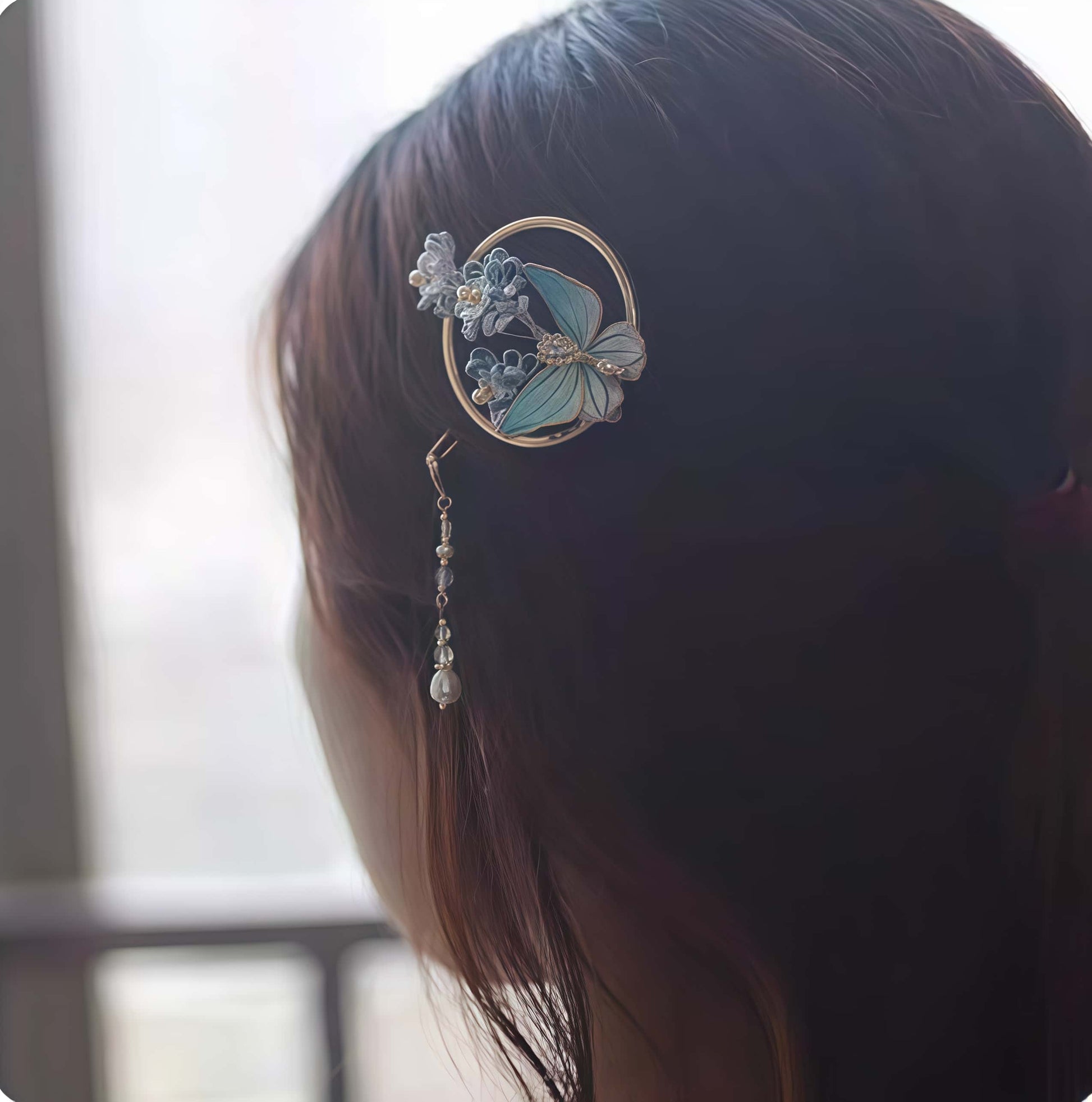 此枚《自在》发夹,以“雨后晴空”之“色”,“自在之蝶”之“形”,为佩戴者,送去一份“挣脱束缚”的“轻盈祝福”。其环形之框,如“圆满”之“结界”;其蝶舞之姿,如“逍遥”之“心”。此器,能为“沉闷”的“日常”,注入“欣喜”与“活力”,提醒您“生命,本是一场游戏”。