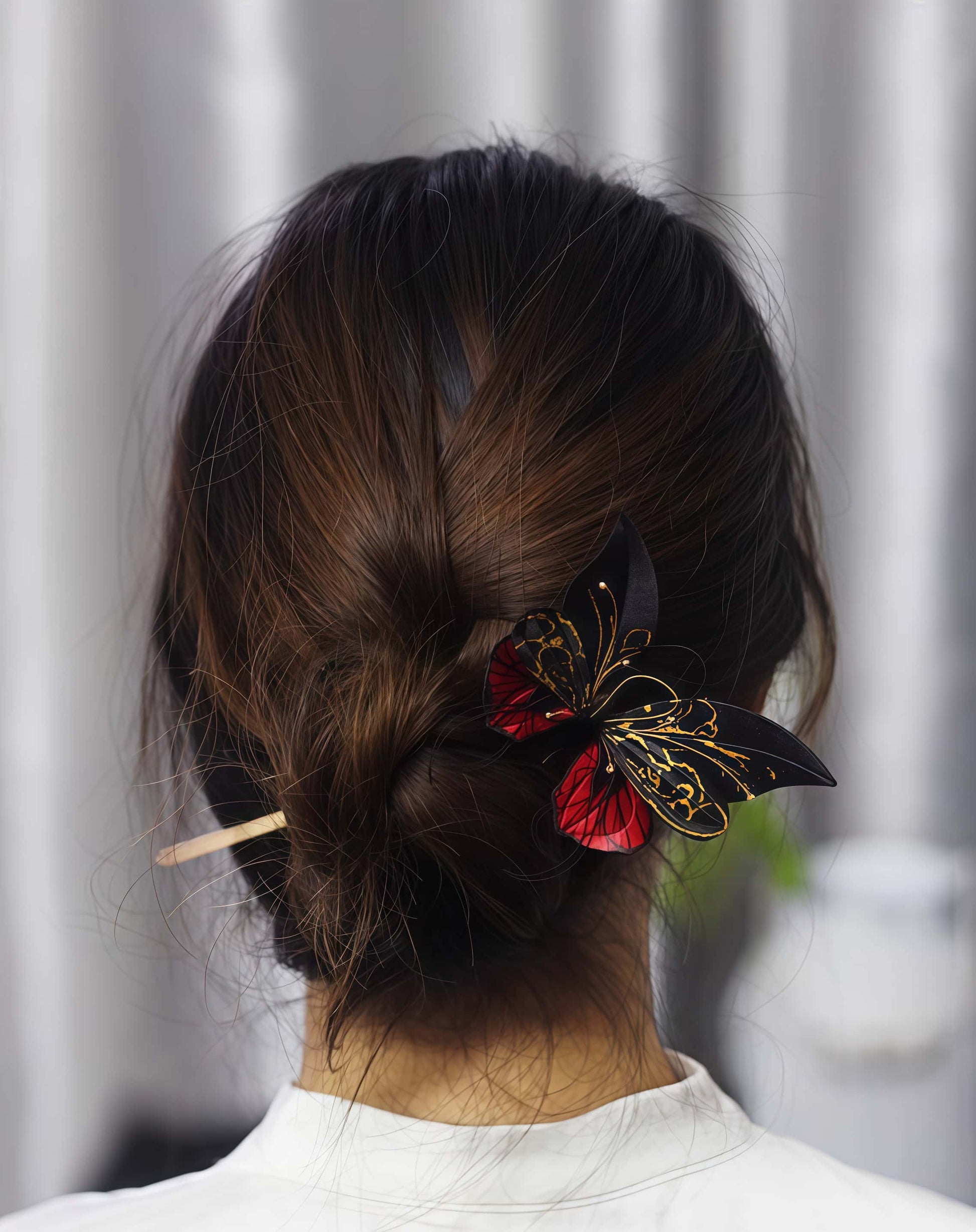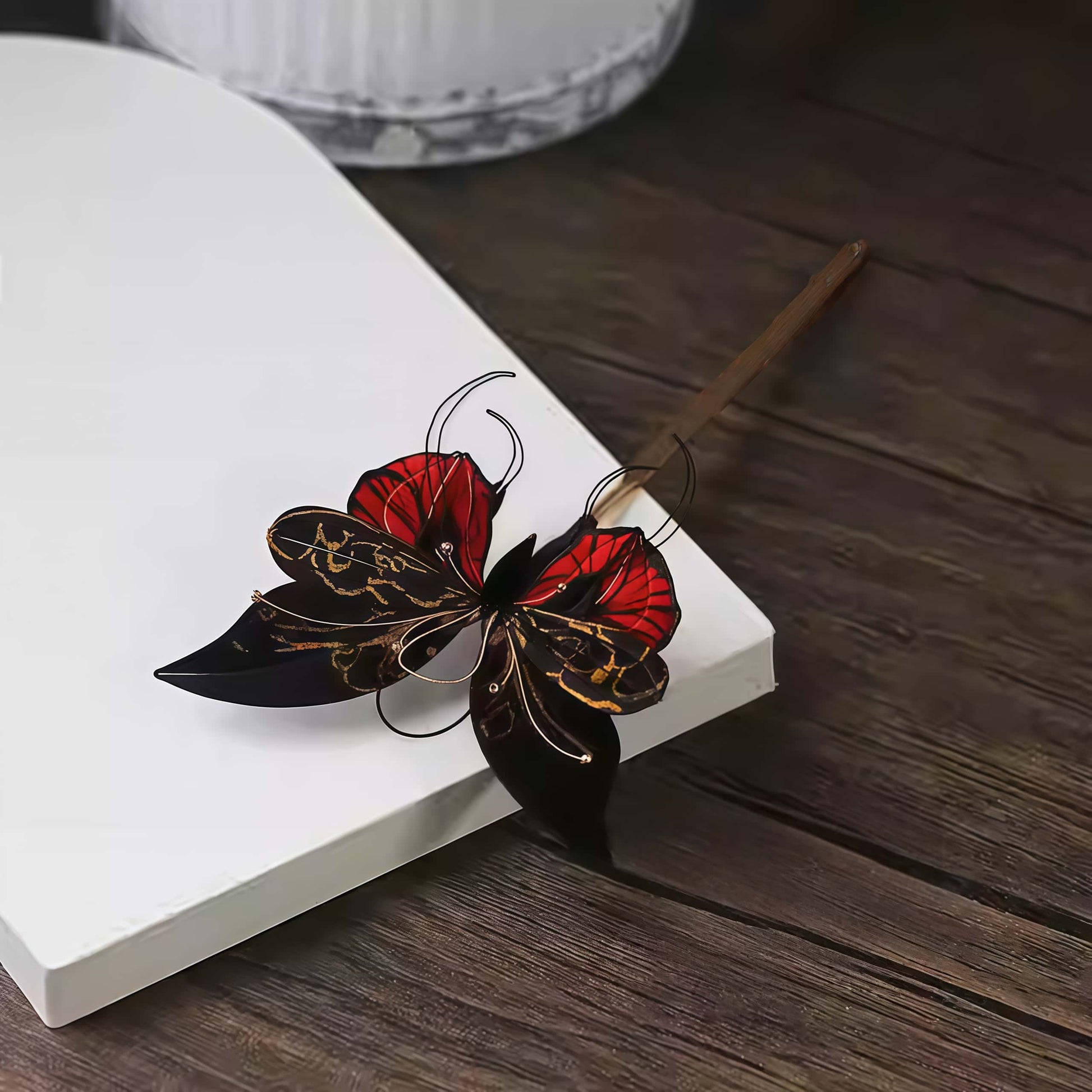 此枚《蜕》发簪,以“地狱之蝶”的“决绝”之美,为佩戴者,见证一场“彻底的新生”。其翼,玄黑与朱红交织,线条锋利,充满了“向死而生”的“戏剧张力”。此器,能量强大,是为那些“即将踏上新旅程”、“决心与过往诀别”的灵魂所作的“加冕之冠”。